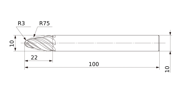Solid End Mills >VQT6UR >VQT6URR030R075S10