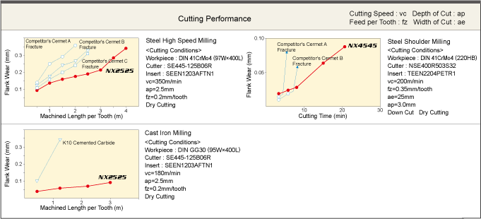 - NX2525 has high hardened Ti compound particles within it's microstructure therefore the grade has both excellent wear and fracture resistance properties.