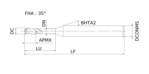 (Fresa con lunghezza tagliente corta, 3 taglienti, per lavorazioni profonde)
