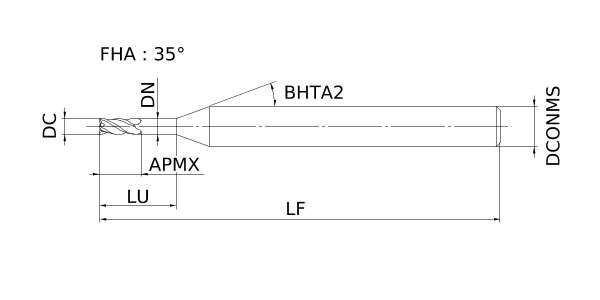 (Fresa con lunghezza tagliente corta, 4 taglienti, per lavorazioni profonde)