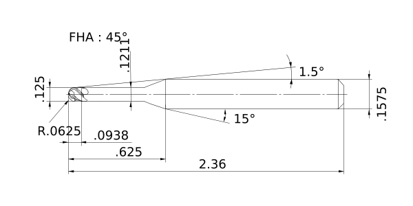 (Ball nose, Short cut length, 4 flute, Long neck)