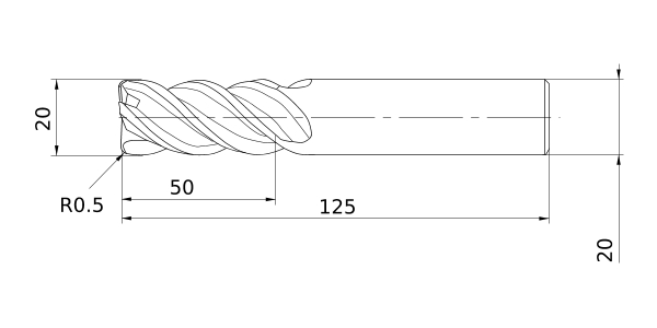 (Corner radius, Medium cut length, 4 flute, Irregular helix flutes)