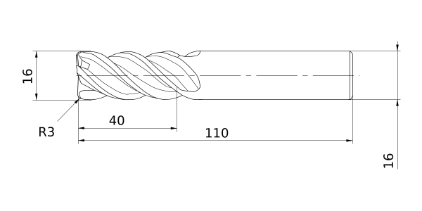 (Corner radius, Medium cut length, 4 flute, Irregular helix flutes)