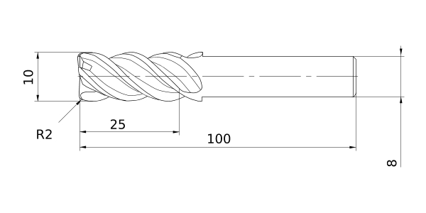 (Corner radius, Medium cut length, 4 flute, Irregular helix flutes)
