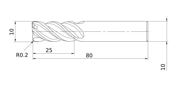 (Corner radius, Medium cut length, 4 flute, Irregular helix flutes)