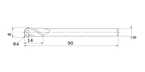 (Ball nose, Short cut length, 2 flute)