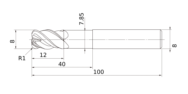 (4 flute, Corner radius, Short cut length, Irregular helix flutes)