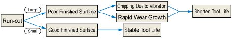 Cutting edge run-out accuracy of indexable inserts on the cutter body greatly affects the surface finish and tool life.
