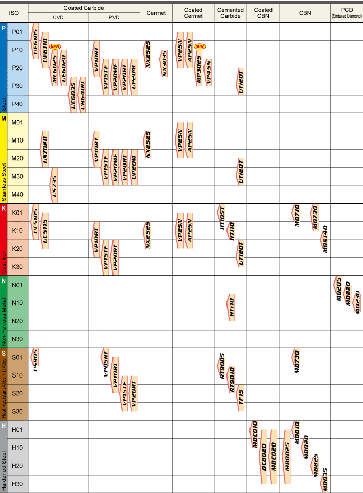 GRADES FOR TURNING / TURNING APPLICATION RANGE
