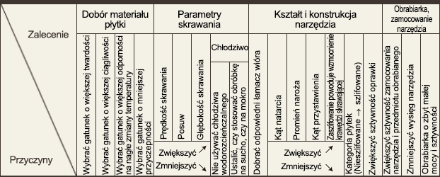 Wykruszenia lub pęknięcia na krawędzi skrawającej