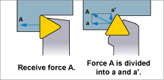 - Increasing the side cutting edge angle increases force a'. Thus, thin, long workpieces can suffer from bending.