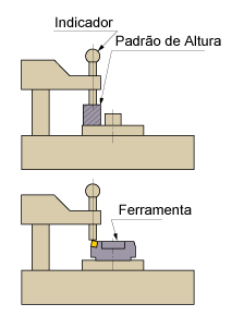 - Ajuste o indicador utilizando o padrão de altura o qual deve ter a mesma altura da ferramenta.