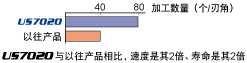 | 切削条件 | 切削速度 (m/min) | 以往产品=100、US7020=200 | 250 |