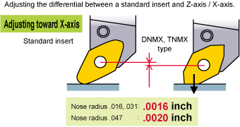 - The correction value is the same for both DNMX and TNMX inserts. Discriminate between then only by the different nose radius.