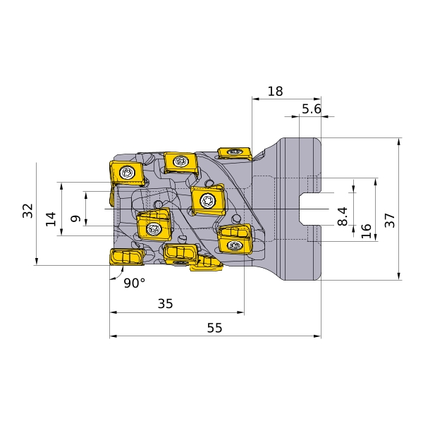 • Arranging the inserts tangentially secures high holder rigidity.