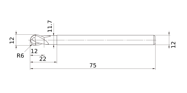 (Ball nose, Short cut length, 2 flute, Short shank)