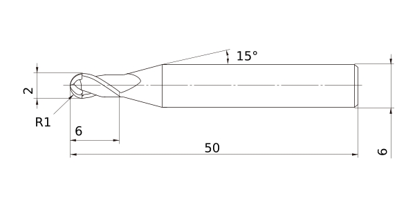 (Ball nose, Medium cut length, 2 flute, For copper electrodes)