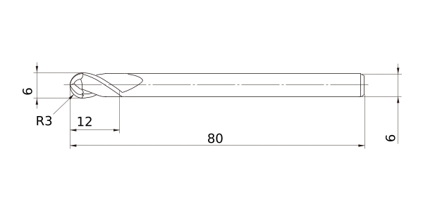 (Ball nose, Medium cut length, 2 flute, For copper electrodes)