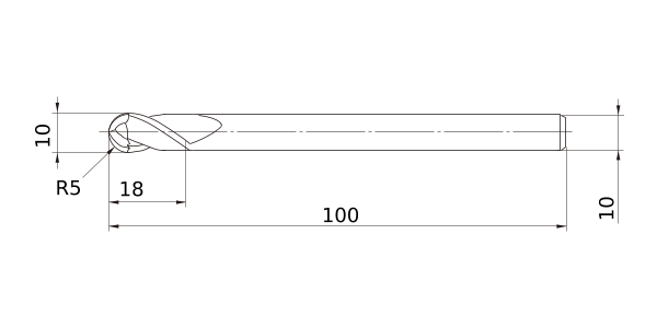 (Ball nose, Medium cut length, 2 flute, For copper electrodes)