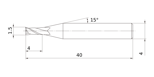 (End mill, Medium cut length, 2 flute, For copper electrodes)
