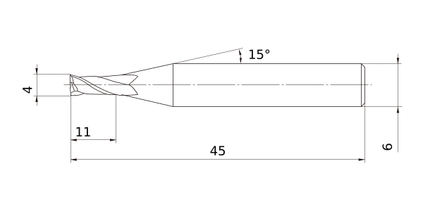 (End mill, Medium cut length, 2 flute, For copper electrodes)