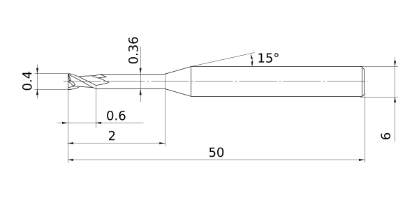 (End mill, Short cut length, 2 flute, 6mm shank)