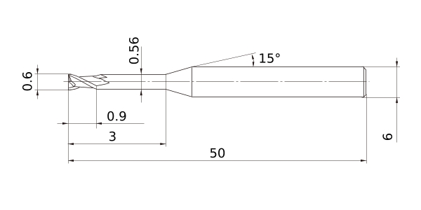 (End mill, Short cut length, 2 flute, 6mm shank)