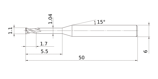 (End mill, Short cut length, 2 flute, 6mm shank)