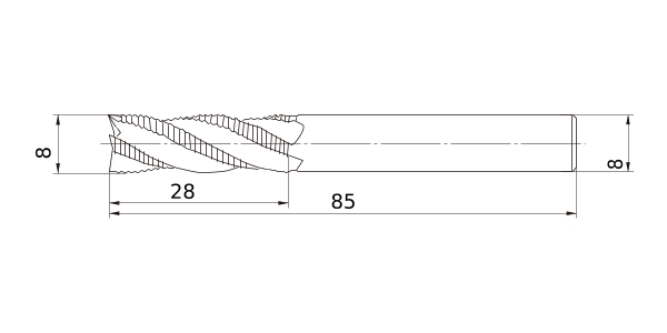 (Roughing type, Medium cut length, 4–6 flute, Fine pitch form)