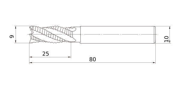 (Roughing type, Medium cut length, 4–6 flute, Medium pitch form)