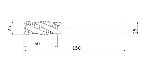 (Roughing type, Medium cut length, 4–6 flute, Medium pitch form)