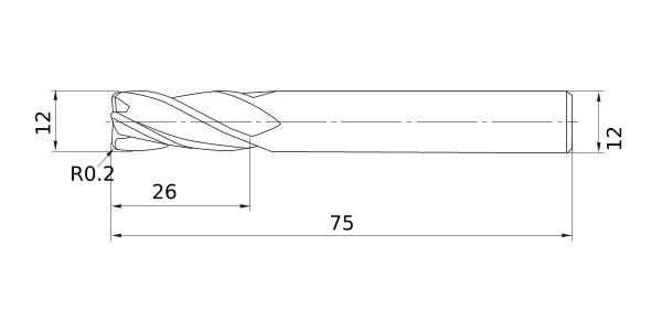 (Corner radius end mill, Medium cut length, 4 flute)