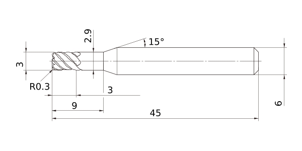 Solid End Mills >VFSDRB >VFSDRBD0300R030