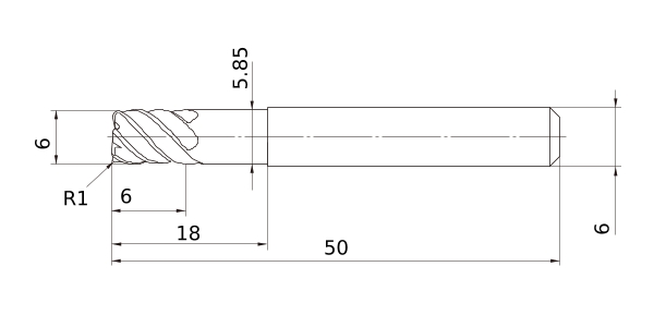 Solid End Mills >VFSDRB >VFSDRBD0600R100