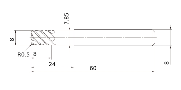 Solid End Mills >VFSDRB >VFSDRBD0800R050