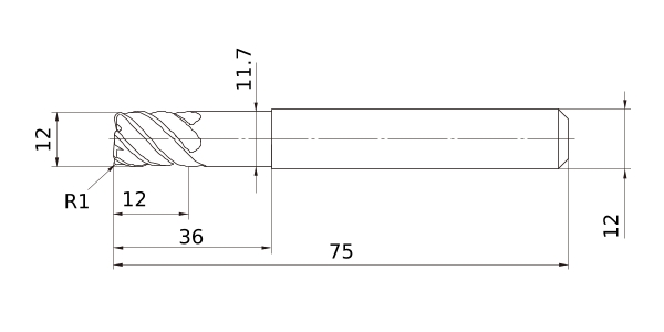 Solid End Mills >VFSDRB >VFSDRBD1200R100