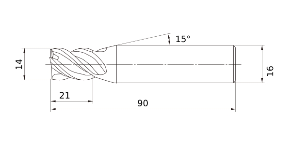 (High power, Short cut length, 4 flute)