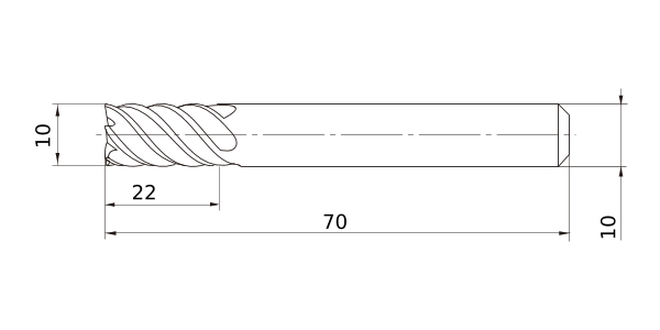 (End mill, Medium cut length, 6 flute, Irregular helix flutes)