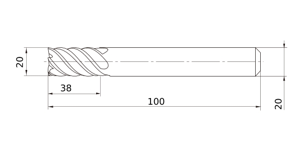 (End mill, Medium cut length, 6 flute, Irregular helix flutes)