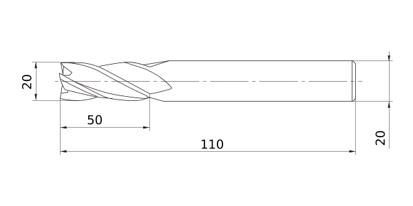 • An irregular helix 4 flute square end mill suitable for high-speed machining of hardened steel.