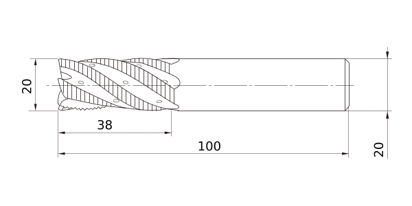 (Roughing end mill, Short cut length, 6 flute, Irregular helix flutes, with multiple internal through coolant holes)