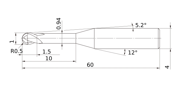 (Ball nose, 2 flute, Long neck, For graphite)