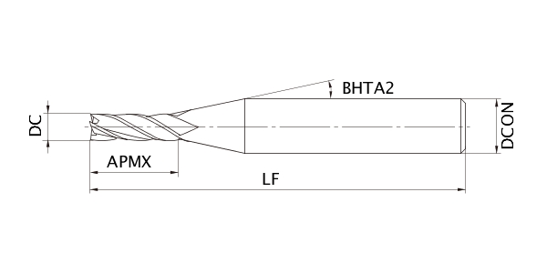 (End mill, Semi long cut length, 4 flute, For graphite)