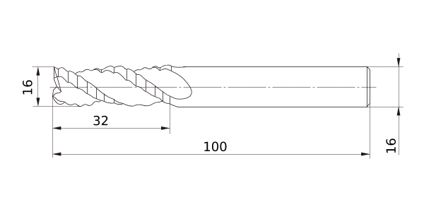 (Roughing end mill, Medium cut length, 3 flute, Relieved neck)
