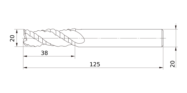 (Roughing end mill, Medium cut length, 3 flute, Relieved neck)