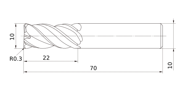 (Corner radius end mill, Medium cut length, 4 flute, Irregular helix flutes)