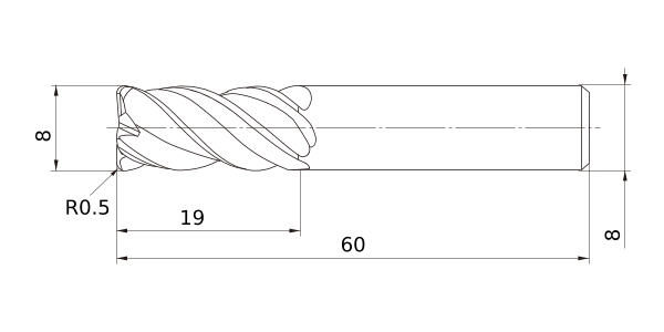 Solid End Mills >VQMHVRBF >VQMHVRBFD0800R050