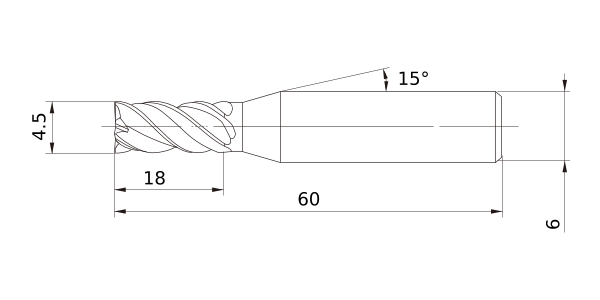(End mill, Semi-long cut length, 4 flute, Irregular helix flutes)