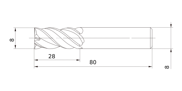 (End mill, Semi-long cut length, 4 flute, Irregular helix flutes)