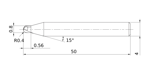 (Ball nose, Short cut length, 2 flute, For hard brittle materials)